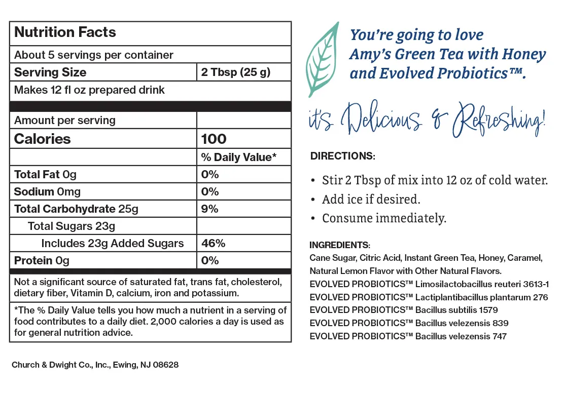 You’re going to love Amy’s Green Tea with Honey and Evolved Probiotics™ — it’s Delicious & Refreshing!